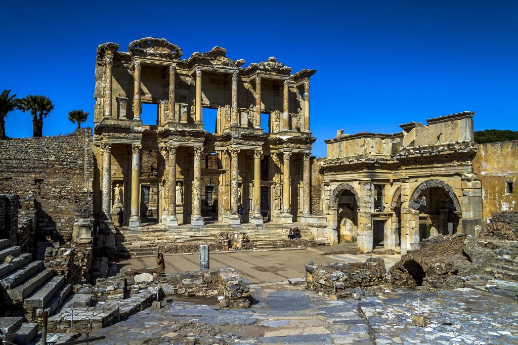 Media Pensión. Por la mañana, visita a Hierápolis, antigua ciudad balnearia fundada alrededor del año 190 a.C. por el rey de Pérgamo prosperando en gran medida durante la época romana, que fue levantada en la parte superior de las piscinas con un bello teatro y gran necrópolis. A continuación, salida hacia Efeso, la ciudad clásica mejor conservada de Turquía construida en el año 1.000 a.C (los restos que vemos hoy son del siglo IV a.C) donde destacaremos: la Biblioteca de Celso, el templo de Adriano y su gran teatro. Al final haremos una parada en uno de los lugares donde se hacen desfiles y venden ropas de piel. Cena y alojamiento.